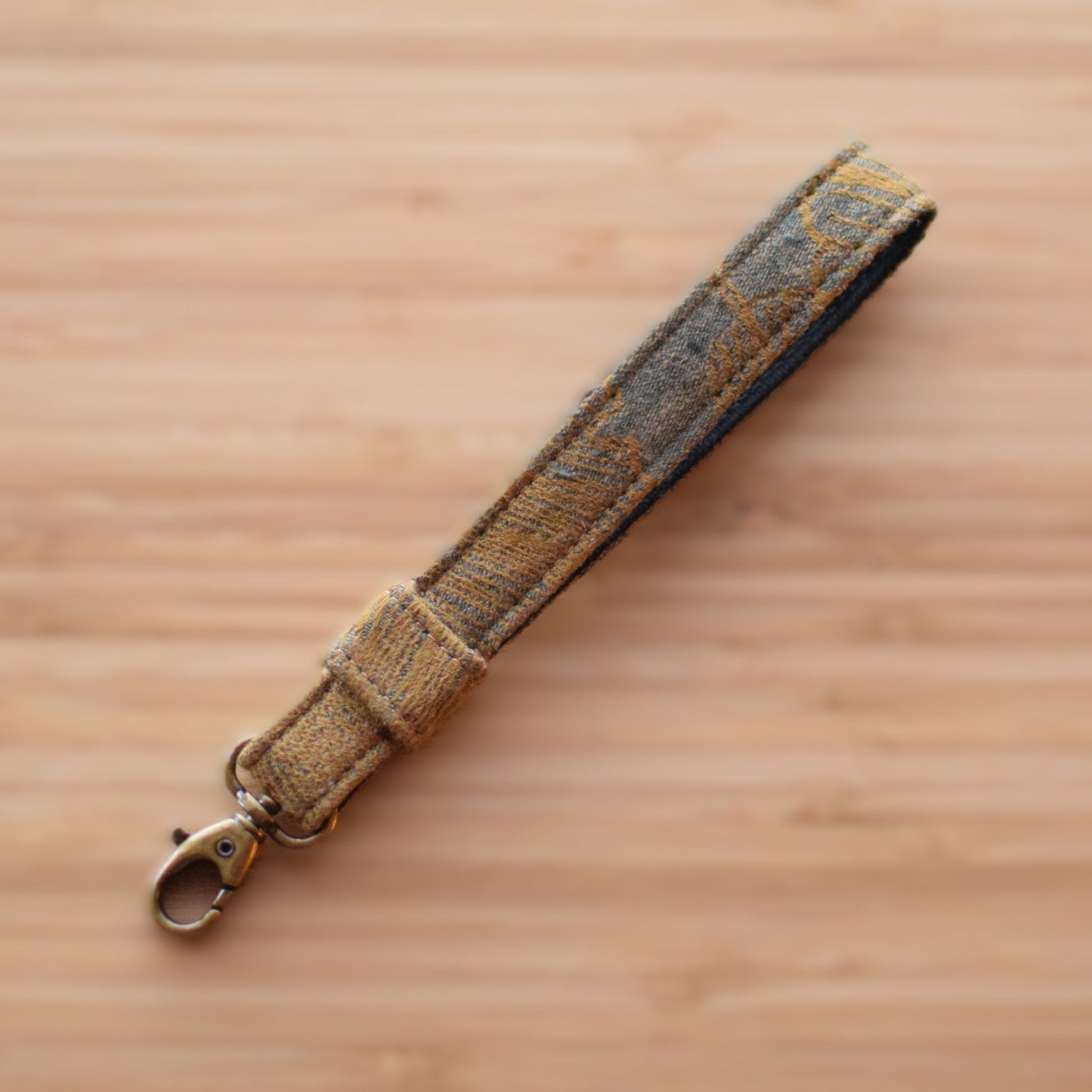 Smuk nøglering med karabin. Viklestoffet er fra Levate med sort bomuldskanvas som bagside. Længde ca. 20 cm.