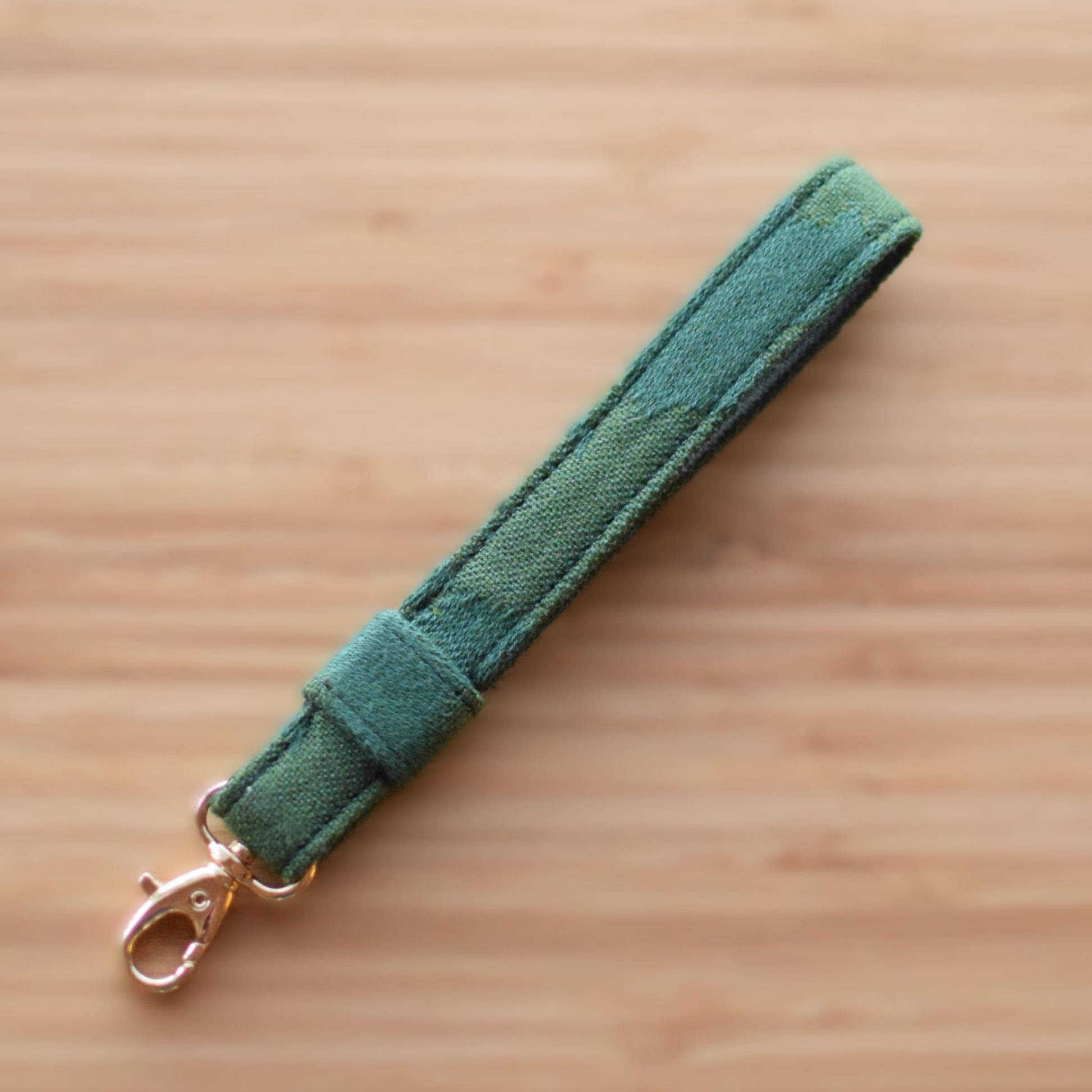 Smuk nøglering med karabin. Viklestoffet er fra Nordic Slings med grøn bomuldskanvas som bagside. Længde ca. 20 cm.