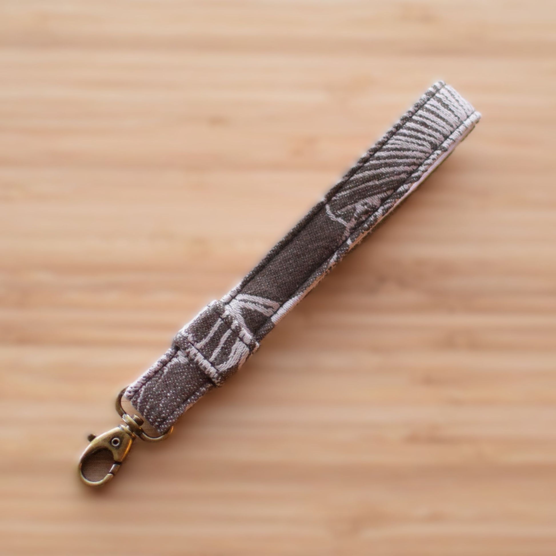 Smuk nøglering med karabin. Viklestoffet er fra Levate med rosa bomuldskanvas som bagside. Længde ca. 20 cm.