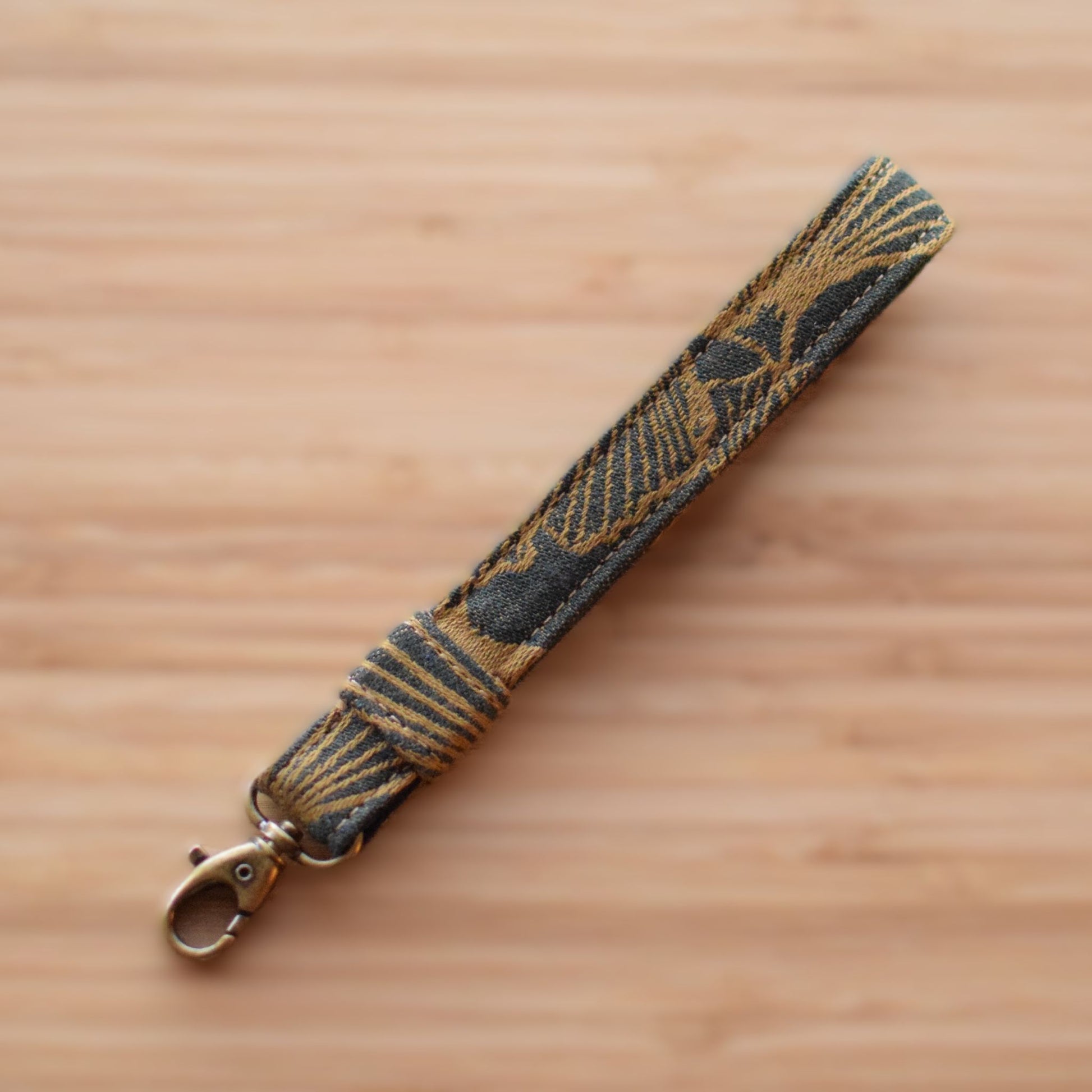 Smuk nøglering med karabin. Viklestoffet er fra Levate med sort bomuldskanvas som bagside. Længde ca. 20 cm.
