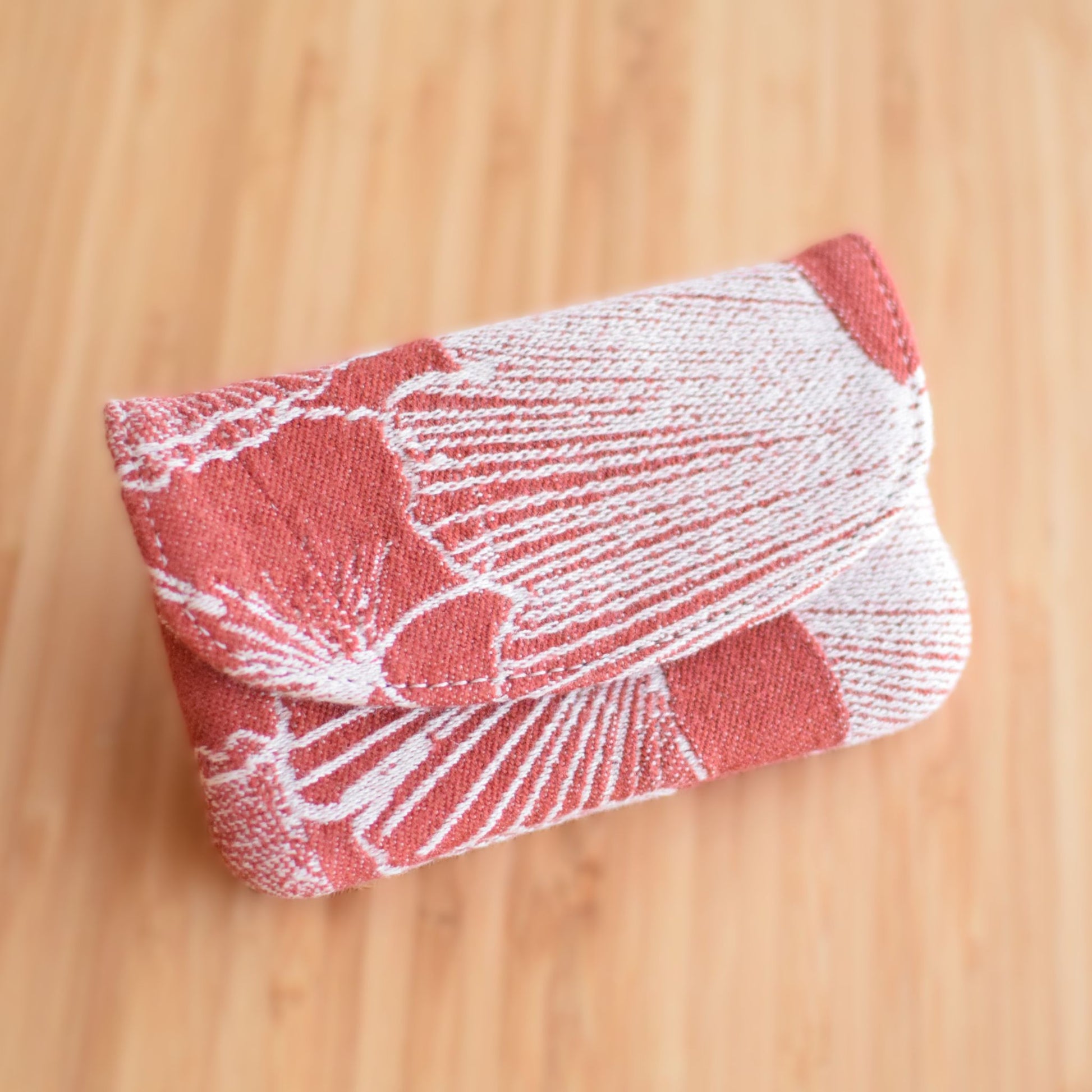 Praktisk og fin pung med to-delt inderrum samt lynlåsrum bagpå. Der er plads til kort, mønter og andre småting, og lukkes med trykknap. Viklestoffet er fra Levate og pungen er foret med rosa bomulds-satin.