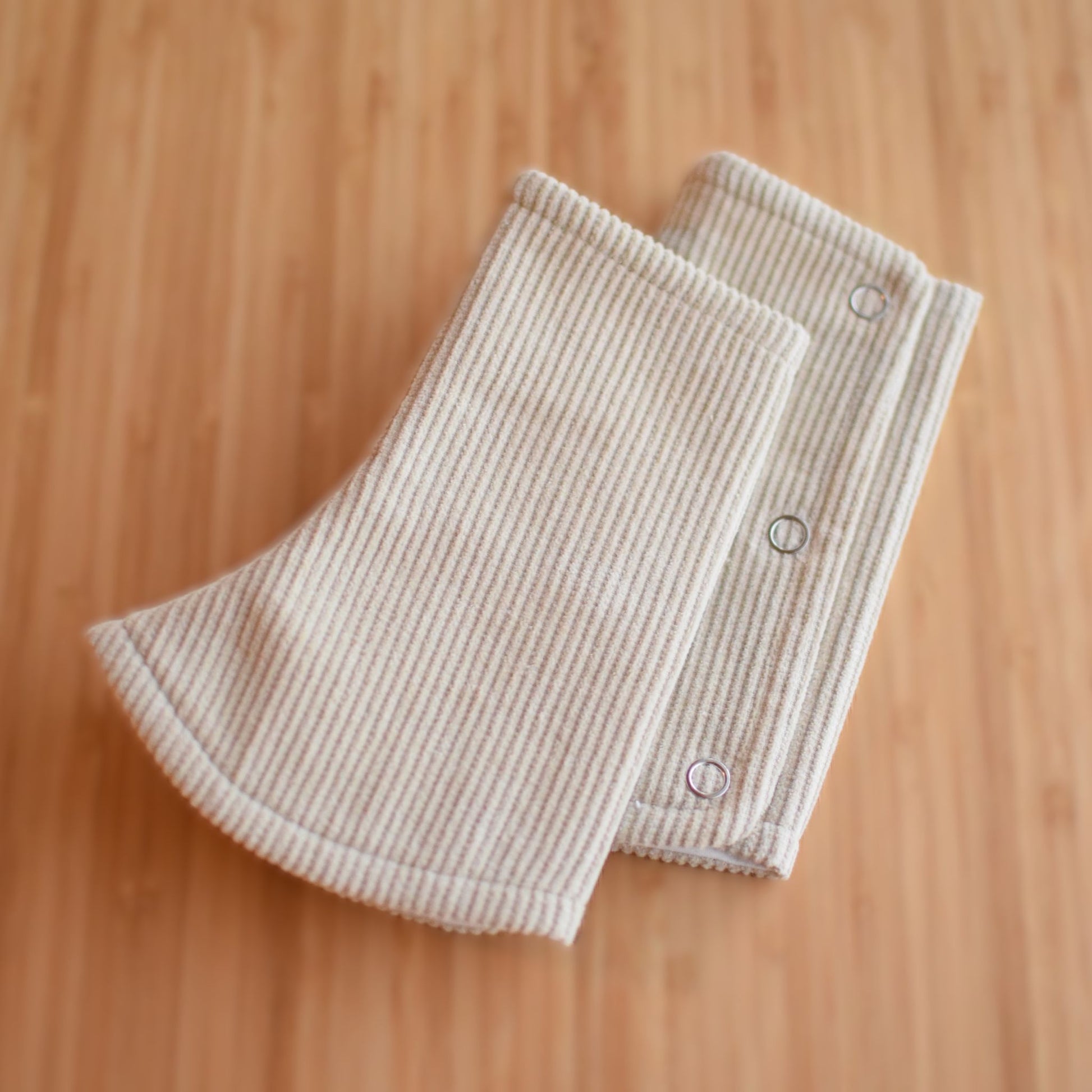 Praktiske beskyttere i bomulds-fløjl til stropperne på din bæresele, med vandtæt mellemlag så fugten ikke trænger igennem. Kan nemt knappes på og af og vaskes. Alle materialer er Oeko-tex 100 certificeret og vasket på forhånd, så du kan tage dem i brug med det samme.